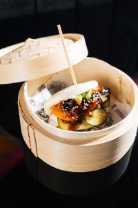4 Yakitori and 4 Kushikatsu skewers, served with 4 steamed veggie gyoza and a special dip