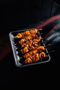 Japanese grilled chicken skewers. Bite-sized pieces of succulent chicken, basted in our secret sauce.
